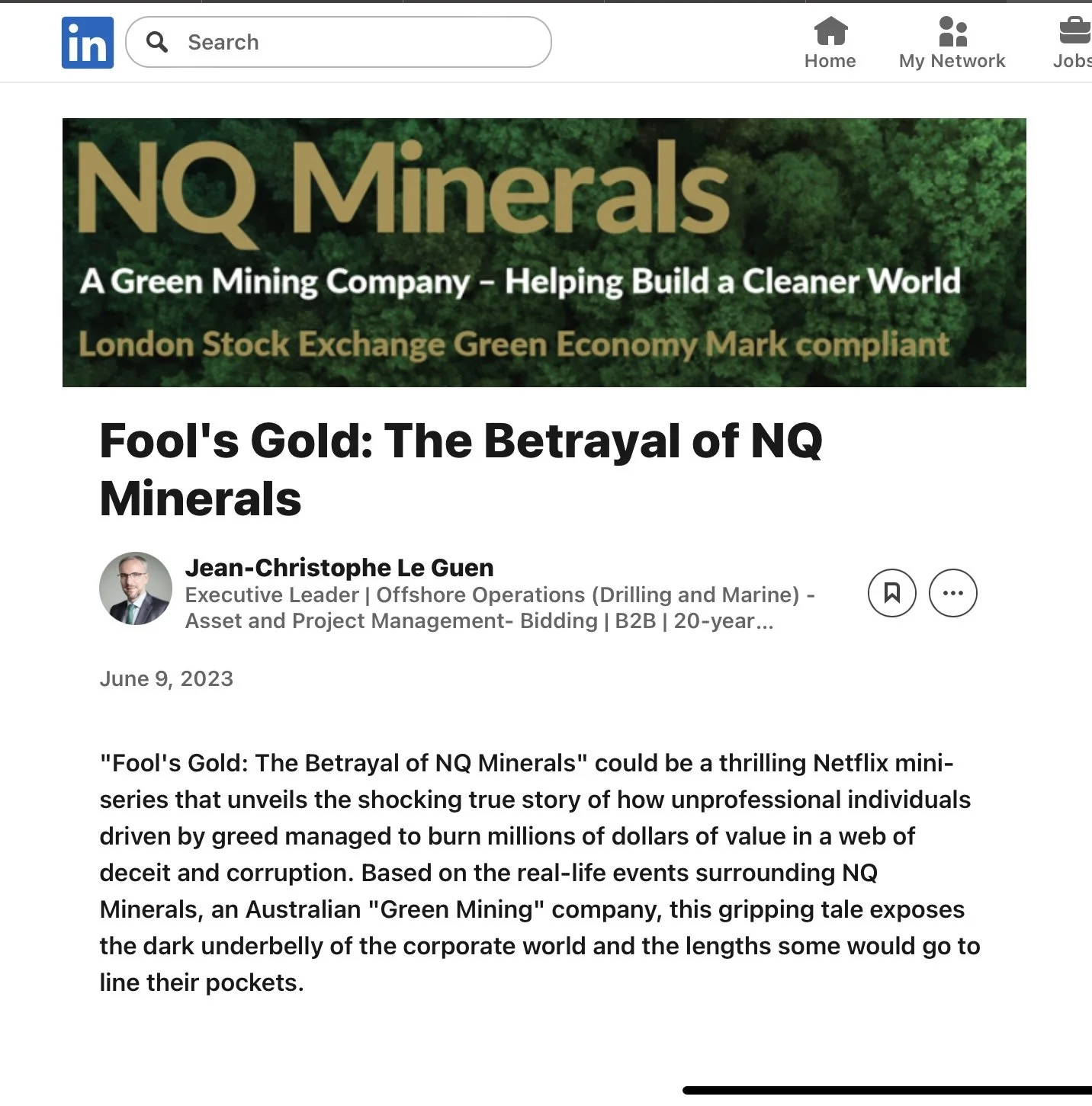 Our work speaks for itself.NQ Minerals PLC – An Overview of the Fraud